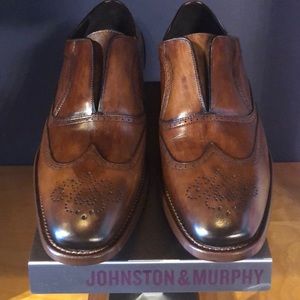 We would like to welcome Arterton as an official Affiliate Vendor. 30 Day Money Back Guarantee. Johnston Murphy Collection Made in Italy Cormac Penny Tan Italian Calfskin Size 105 dress shoes Brand new never worn Comes with shoe bag and box Originally 299 Waxed nubuck hand-finished to achieve multi-dimensional depth and individual character.